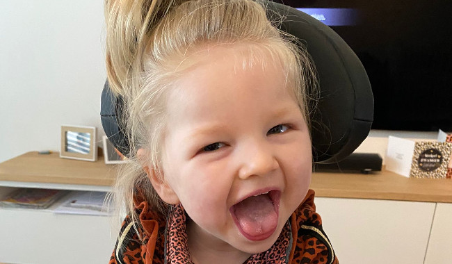 Zoë werd toen ze 4 maanden oud was levenloos in bed aangetroffen op de opvang. Ze is 20 minuten gereanimeerd en met de traumahelikopter naar het Radboudumc in Nijmegen gebracht. Daar werd ze in kunstmatige coma gehouden. Een week lang wisten we niet of ze het zou gaan halen. Ze heeft ernstig hersenletsel als gevolg van zuurstoftekort. Ze heeft Cerebrale Parese, dystonie en CVI. Motorisch loopt ze erg achter. Naast de reguliere therapieën volgen we ook ABM therapie. Dit speelt in op de hersenplasticiteit, zorgt voor nieuwe bewegingspatronen. Hierdoor ontwikkelt ze en zit ze veel beter in haar vel! Helaas wordt dit (nog) niet vergoed. De therapie kost ons €3000 per jaar. Heel erg bedankt!